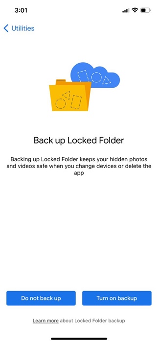 7. Wählen Sie, ob Sie möchtenBack -up -FotosIn Ihrem verschlossenen Ordner.