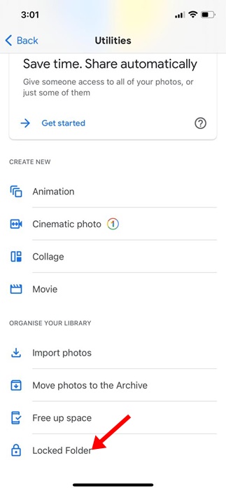 Die einzige Möglichkeit, auf die Fotos zuzugreifen, besteht darin, den gesperrten Ordner zu entsperren. iPhone -Benutzer können diese Funktion auch in ihrer Google Photos -App haben. So wie.