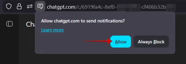 Wenn Sie Ihre erste Aufgabe erstellen, werden Sie von ChatGPT gefragt, ob Ihnen Benachrichtigungen gesendet werden können. Sie sollten die Option aktivieren, damit ChatGPT bei jeder Ausführung der Aufgabe eine Warnung senden kann.