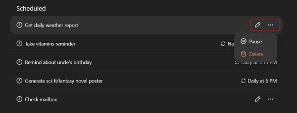 Sie können auch auf das Dreipunktsymbol klicken und auswählenPauseoderLöschendie Aufgabe.
